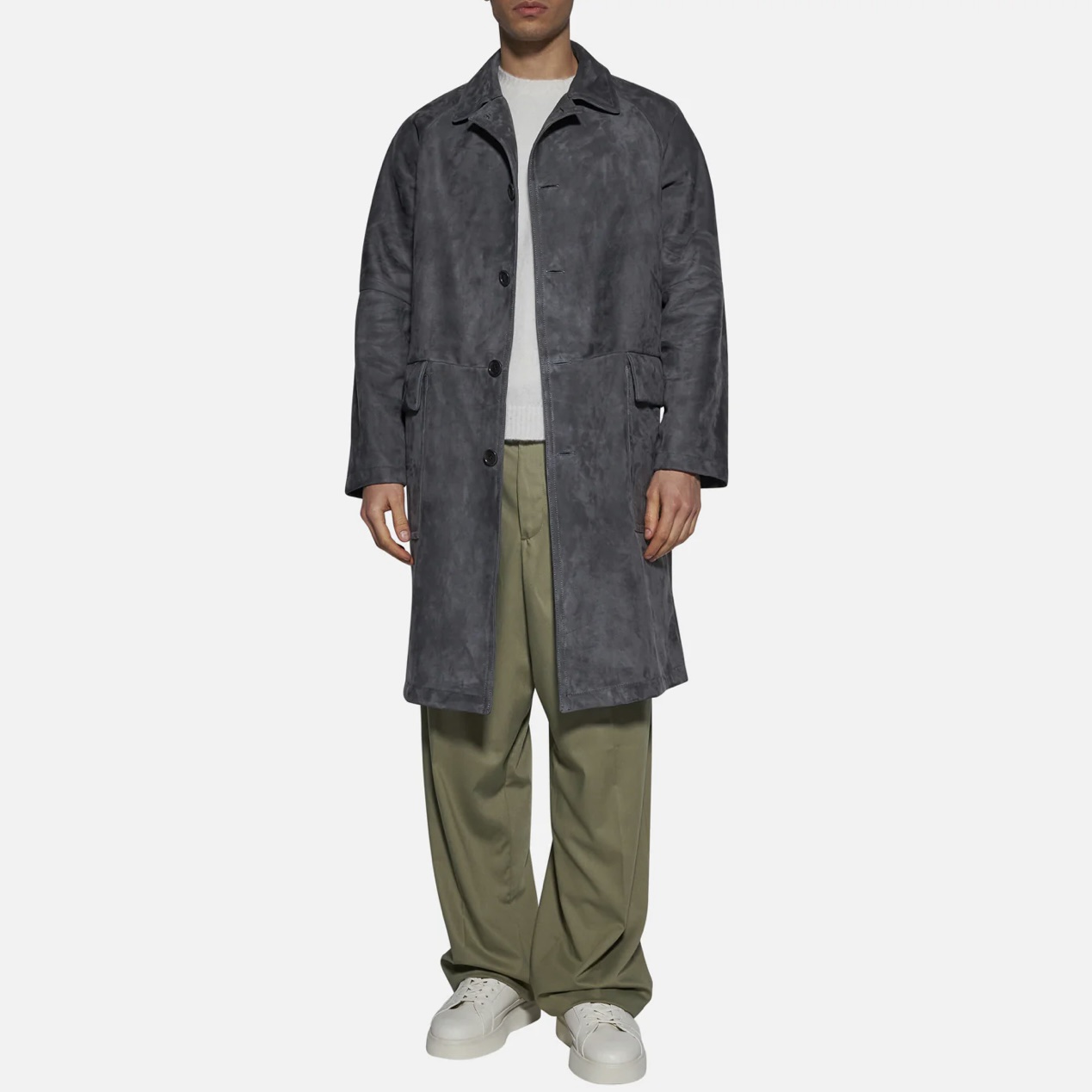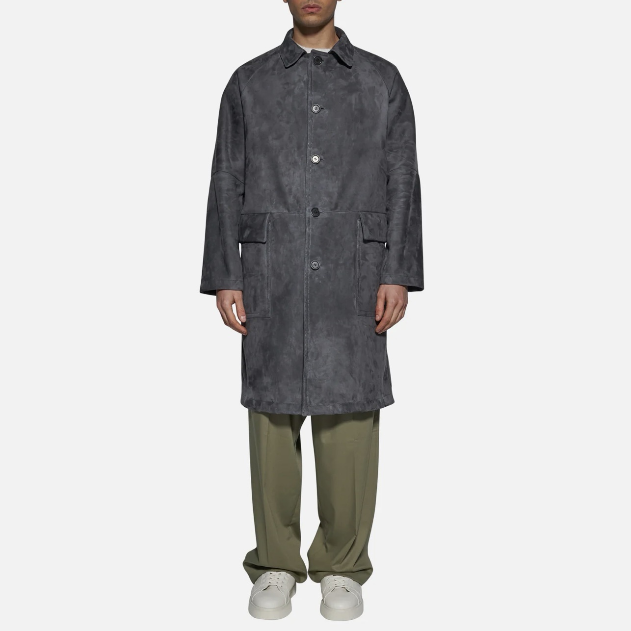 Gray suede coat, made with high-quality materials, this garment combines a minimal design with functional details, such as large front pockets and a visible button closure. Perfect for those who love a discreet yet refined style, the coat offers excellent fit and comfort thanks to the softness of the suede. Ideal for cold days, it is a versatile garment to wear with both casual and formal outfits. Update your wardrobe with a garment that guarantees style and practicality.