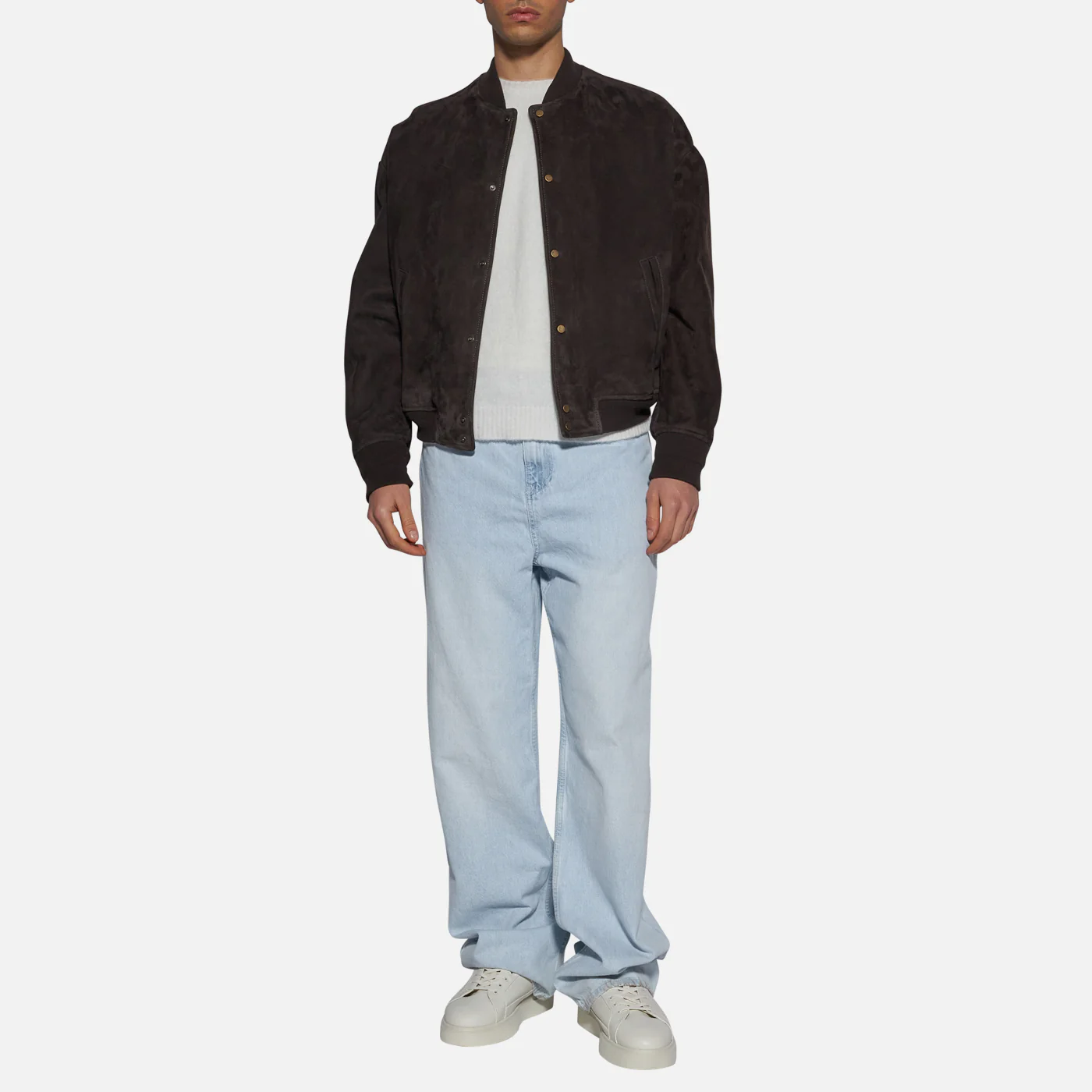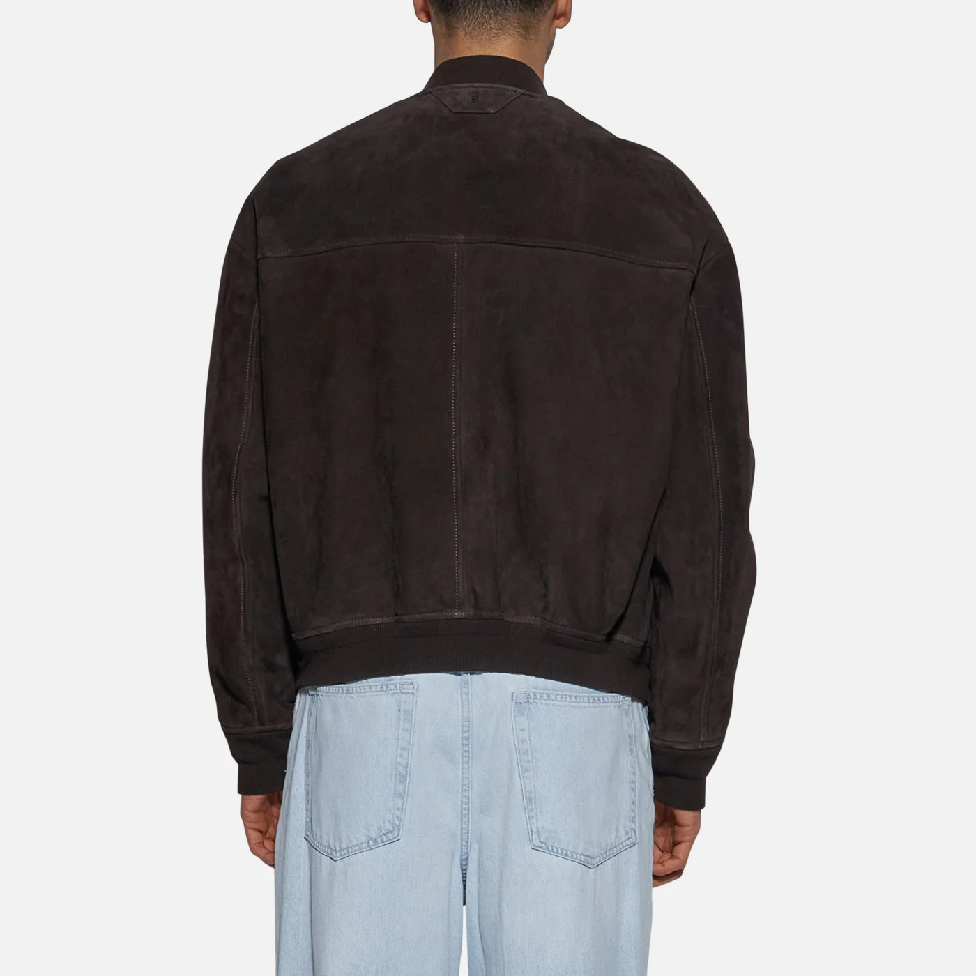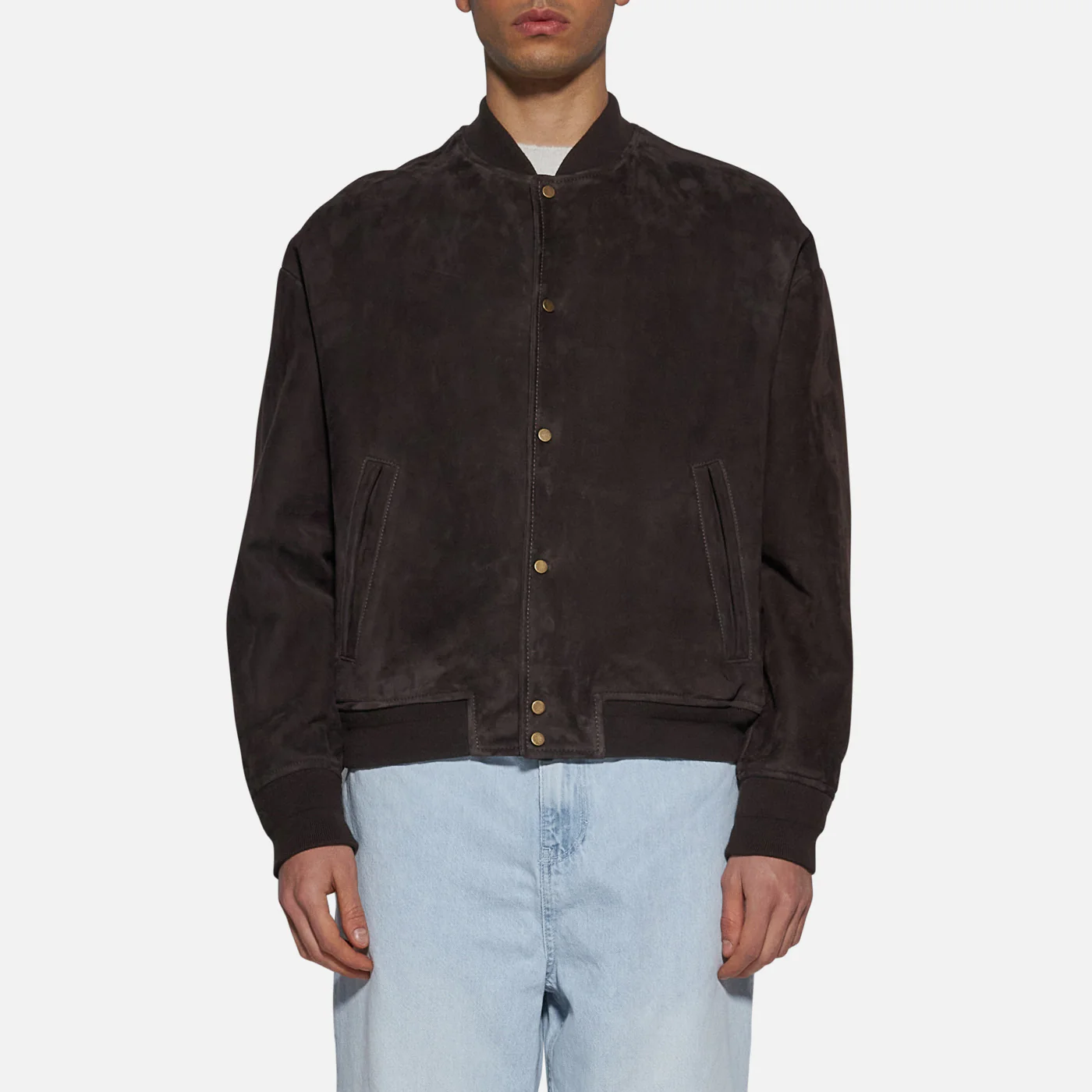 This brown suede bomber jacket is the perfect balance between casual style and sophistication. Crafted from high-quality suede, it offers a soft and durable texture. The classic design with snap buttons and ribbed finishes on the cuffs, collar and hem, makes this jacket versatile and suitable for numerous occasions. Perfect for a relaxed yet elegant look, this bomber is ideal for the transitional period, ensuring comfort and style in every situation. The side pockets add practicality without sacrificing the minimalist aesthetic.